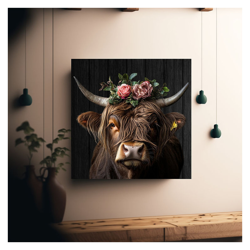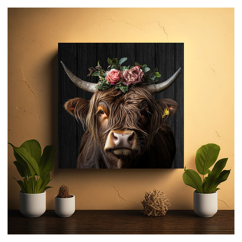 Diese besondere Wanddekoration bietet Ihnen Flexibilität: Wählen Sie die drei beliebten Motive als einzelne Kunstwerke, um Akzente zu setzen, oder als beeindruckende Panorama-Leinwand, die alle drei Rinder vereint.